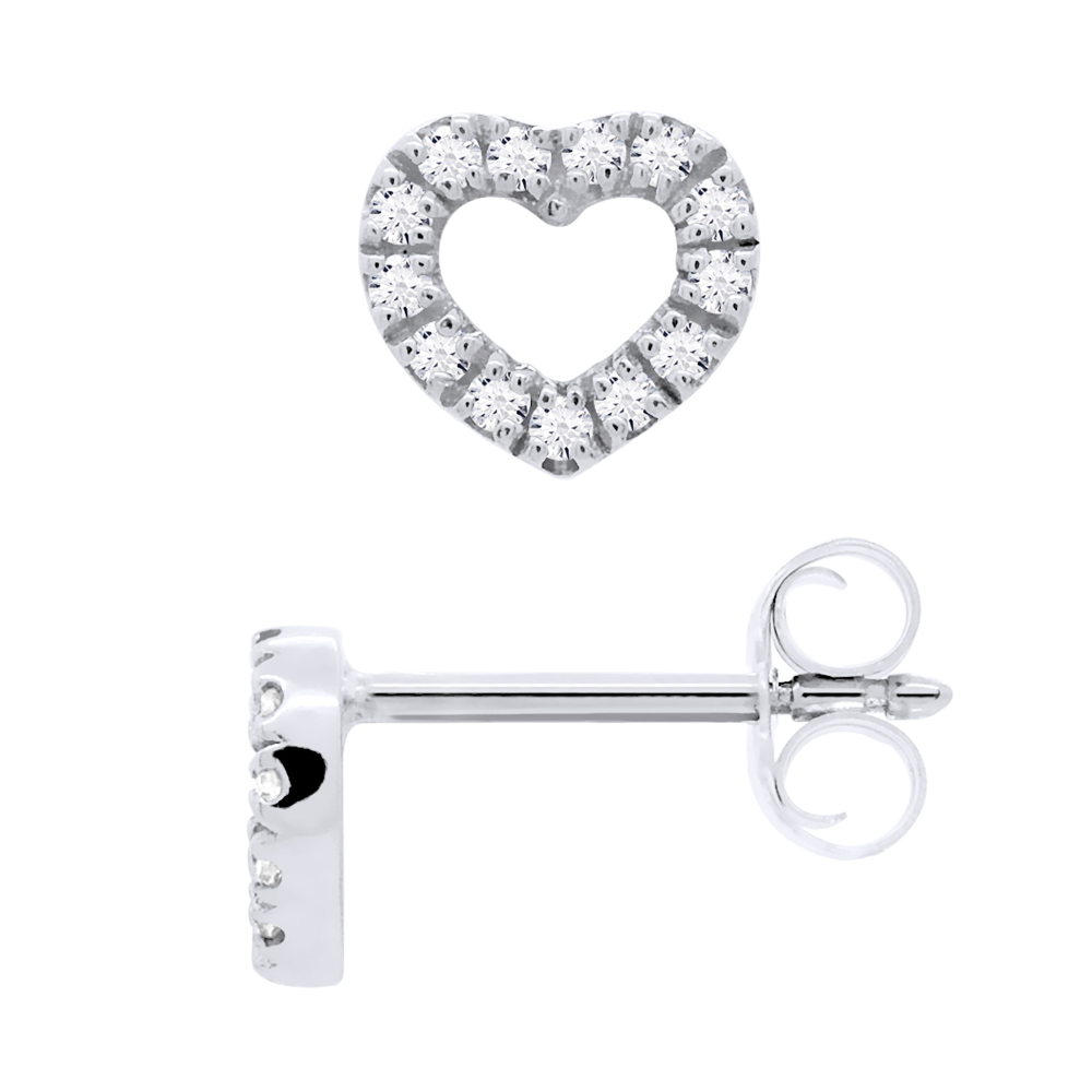Boucles d’Oreilles Coeur Diamants 0,08 Cts – 2 x 0,04 Cts – Or Blanc 375 Millièmes – Systèmes POUSSETTES – Livrées avec Certificat d’Authenticité et de Garantie Internationale