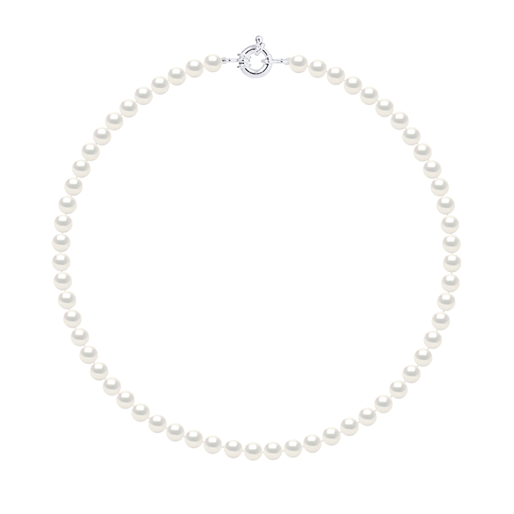 Collier Rang de Véritables Perles d’Eau Douce Rondes 6-7 mm – Colori Blanc Naturel – Longueur 42 cm – Fermoir ANNEAU MARIN Prestige – Argent 925 Millièmes Rhodié – Livré avec Certificat d’Authenticité et de Garantie – Fabriqué en FRANCE