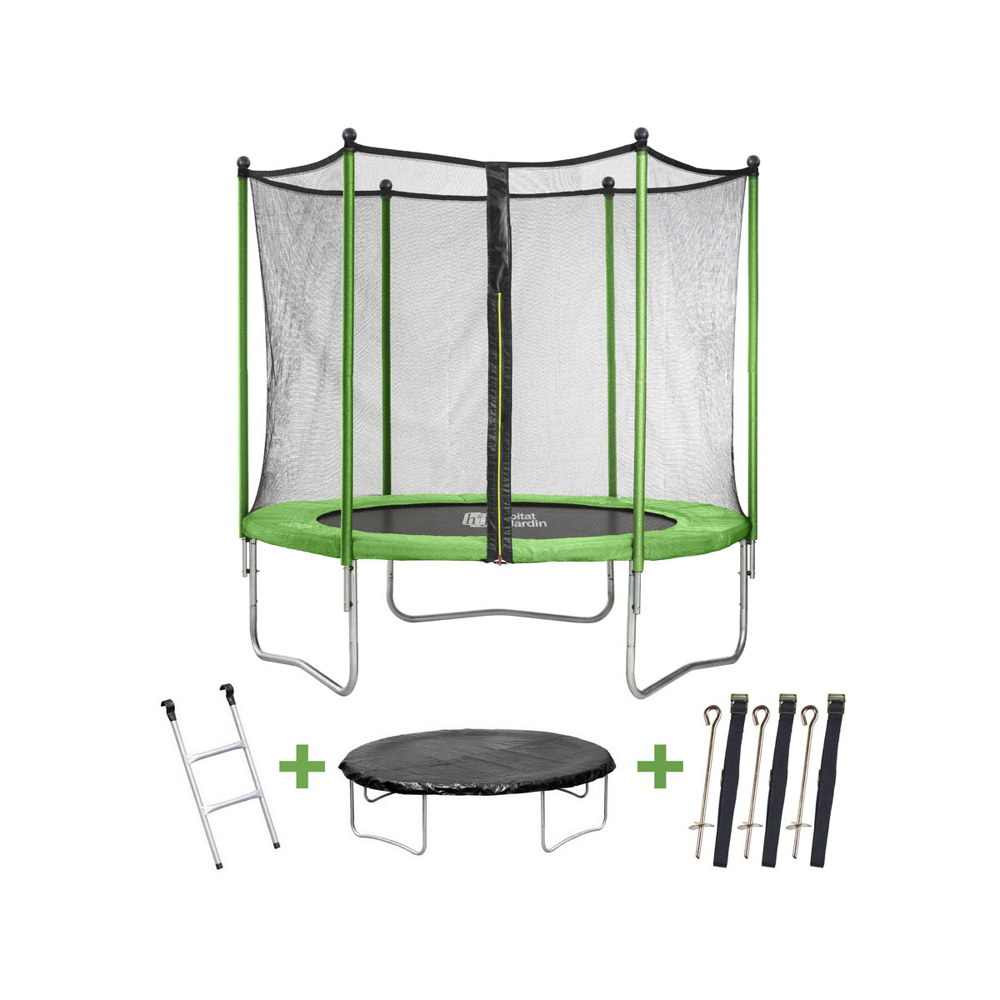 Specification: Trampoline “Yoopi 2” – √ò 1.80 m – avec filet + échelle + couverture + kit d’ancrage