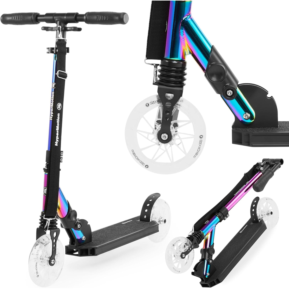 Offrez-vous une expérience positive et un plaisir de conduire ! Passez du temps activement à l‚Äôextérieur ! Une trottinette aux couleurs holographiques est un moyen s√ªr de se démarquer et de s’amuser.Conduire une trottinette n’est pas seulement amusant, mais c’est aussi un moyen pratique d’atteindre votre destination. Offrez à votre enfant un moyen de transport sécurisé. C’est un cadeau parfait pour un enfant d’√¢ge scolaire. La trottinette Holo Majestic a une structure stable et sa hauteur peut être réglée jusqu’à 3 niveaux . Gr√¢ce à cela, vous pourrez facilement l’adapter aux besoins de votre enfant. Des roues de haute qualité qui absorbent parfaitement les chocs et assurent un confort de conduite.Caractéristiques principals:Cadre 100% aluminiumamortisseur avantroulements ABEC-7 haut de gammeboucle à double serrage, en aluminiummaximum. charge : 100 kg ! hauteur du guidon réglable – 74/81/88 cmplateforme antidérapantepoignées confortables et pliables et clips pour les fixersangle de transport réglablemontage rapidefrein à pied arrièrela couleur HOLO la plus en voguepliable – rangement et transport facilespour les enfants de plus de 7 ansDépréciation :Le scooter Holo Majestic est équipé d’ un amortisseur spécial qui soulage toute la structure et absorbe les chocs , rendant les déplacements sur des surfaces inégales beaucoup plus confortables.Moins de vibrations se traduit également par une plus grande stabilité et sécurité de conduite .Roues de 145 mm :en PC (caractérisé par une durabilité et une résistance à l’abrasion extrêmement élevées ) dureté : 88Adiamètre : 145 mm4 rayonsRoulements ABEC-7 haut de gamme:en acier – durabilité exceptionnellelargeur : 0,7 cmlongueur des manches : 2,2 cmgarantie de précision et d’efficacitéVolant:Droiten aluminiumhauteur du sol : 88/81/74 cm (réglable) hauteur depuis la plateforme après montage : 78 cmPlate-forme:type CNCen aluminiumangle du tube de direction (inclinaison du guidon) : 45 degréssurfaces latérales platesPoignées:longueur : 12 cmmatériau : TPR (caoutchouc thermoplastique) moyenne externe dans la partie grip : 3 cmspecifications:dimensions : 71 x 40 x 88/81/74 cmdimensions après pliage : 71 x 13 x 28 cmdimensions du colis : 71 x 13,5 x 28,5 cmlongueur de la pince de serrage : 3 cmpoids : 4 kgmaximum. charge : 100 kgavec manuel d’utilisationSécurité:Le produit a été réalisé avec une grande attention aux détails et adapté aux besoins des enfants de plus de 6 ans. Il n‚Äôa pas d‚Äôarêtes vives. Répond à toutes les exigences de sécurité en vigueur dans l’UE, y compris les normes EN14619.